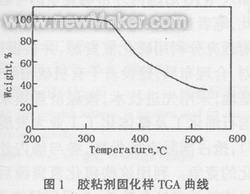 对该胶粘剂的固化样进行热失重分析(TGA),见图1。